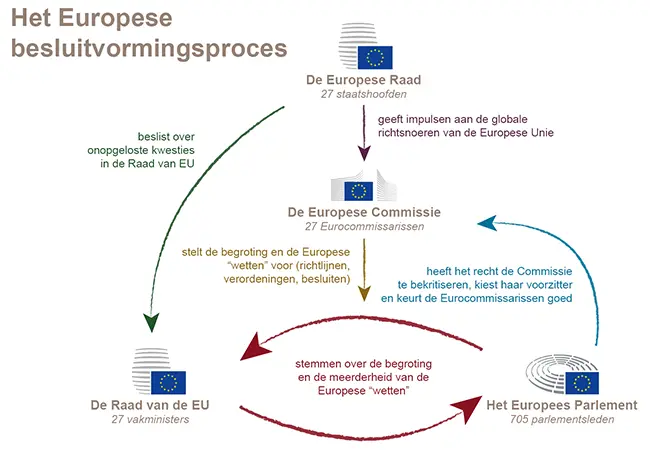 Bij de besluitvorming in de Europese Unie zijn vier belangrijke instellingen betrokken: de Europese Commissie, het Europees Parlement en de Raad van de Europese Unie. Samen vormen zij de Europese "institutionele driehoek".